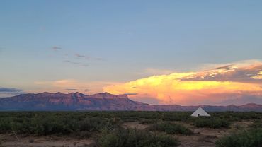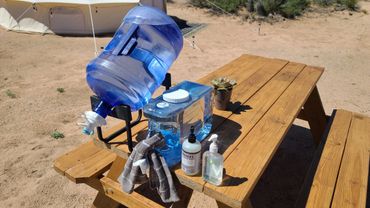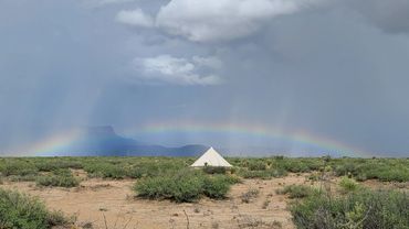 Large 17 foot circumference 10 ft tall yurt. Real queen sized bed with box spring and fresh linens. No mat on the dirt here! Picnic table, site trash can, and grill.